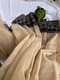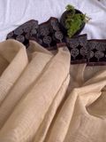 Custom made Ajrak hand block printed borders on Beige light weight cotton kota doria saree. Elegant, stylish and full of character. One of a kind comfortable saree for any occasion