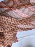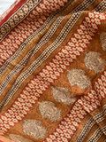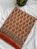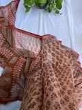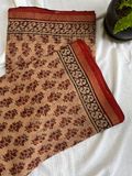 Beige saree in kota Doria adorned with bold red flower buds in earthy undertones. This pure cotton Kota doria saree will keep you comfortable the whole day.