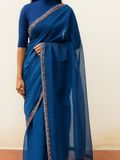 Deep indigo colour soft light weight Cotton Kota doria saree with a simple beautiful border . Elegant, classy and air light.
