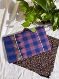 Hand picked limited edition combination of madras checkered cotton saree meets hand block printed cotton ajrak blouse. When contrasts become the perfect combination.