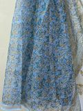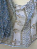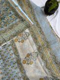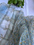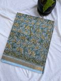 Yellow floral block prints on beautiful powder blue saree in pure cotton kota doria