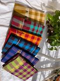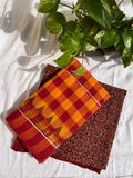 Hand picked limited edition combination of madras checkered cotton saree meets hand block printed cotton ajrak blouse. When contrasts become the perfect combination.